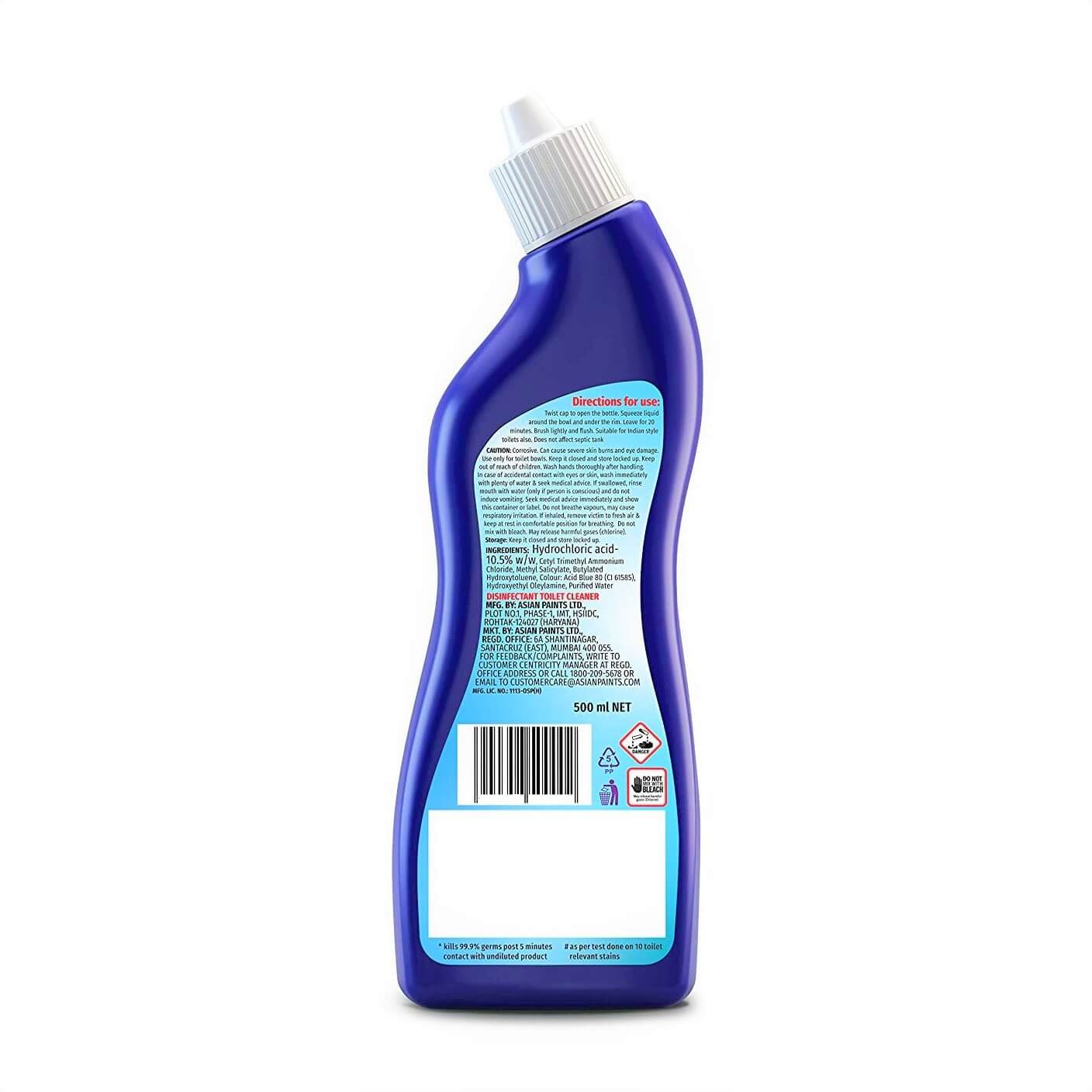 Asian Paints Toilet Cleaner is the Stain Removal toilet cleaner. It is more effective than other ordinary toilet cleaners. It is made of thick liquid formula which deeply cleans the toilet surface.