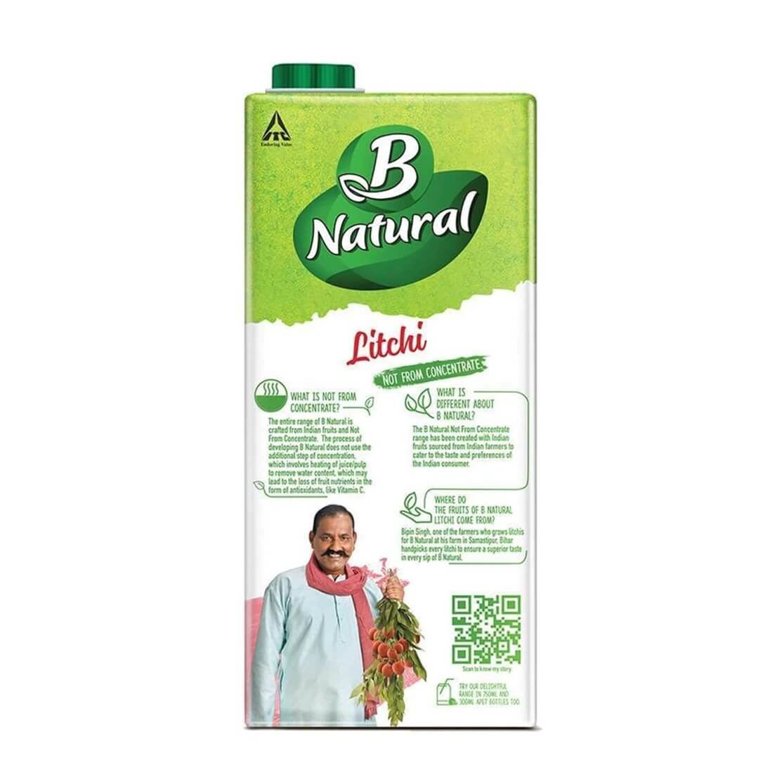 B Natural Litchi Juice made with 100 % Indian authentic fresh litchi pulp and without any use of concentrate. In Process of B Natural fruit Juices, does not use the additional concentration with heating the pulp to remove water content.