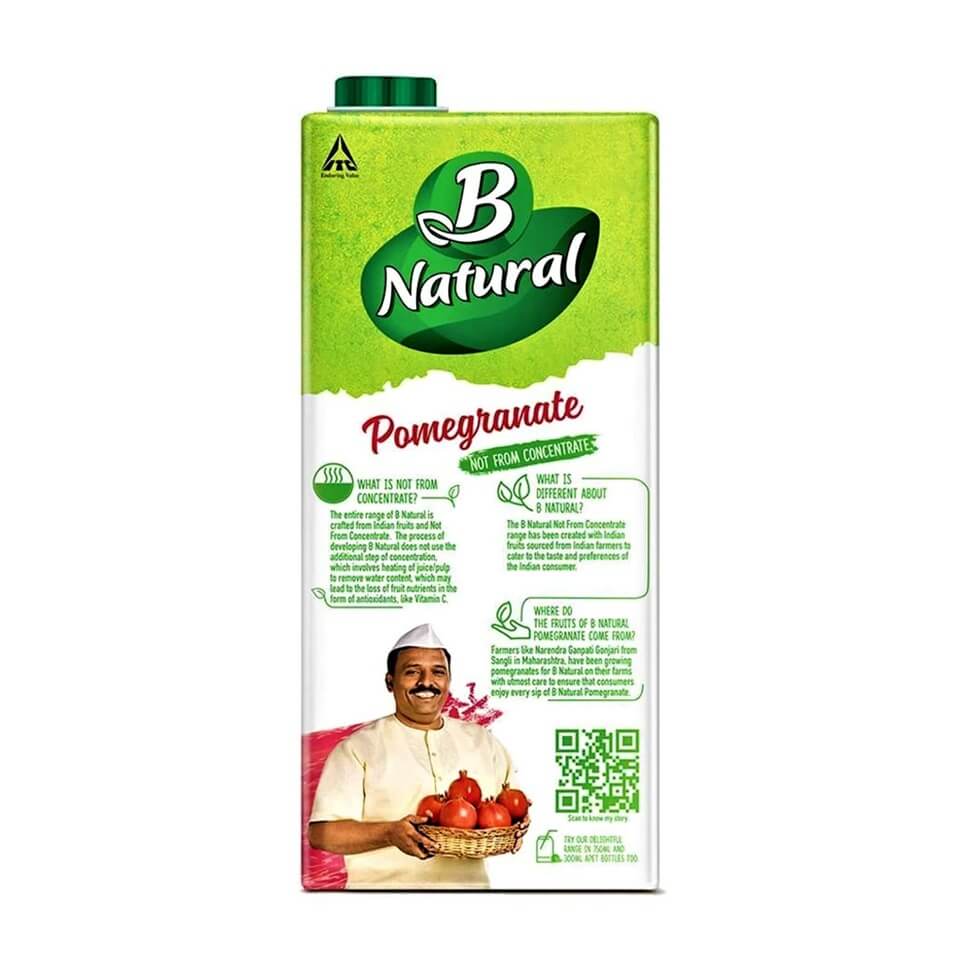 B Natural Pomegranate Juice made with 100 % Indian authentic fresh pomegranate grain and without any use of concentrate. In Process of B Natural fruit Juices, does not use the additional concentration with heating the pulp to remove water content.