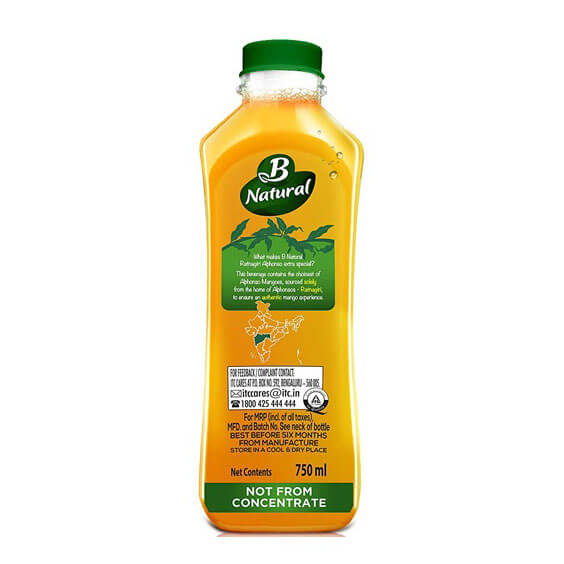 B Natural Ratnagiri Alphonso Juice made with 100 % Indian authentic fresh Ratnagiri Alphonso mango pulp without any use of concentrate. Ratanagiri Alphonso Mango is the source from Ratnagiri which provide best mango experience. In Process of B Natural fruit Juices, does not use the additional concentration with heating the pulp to remove water content.
