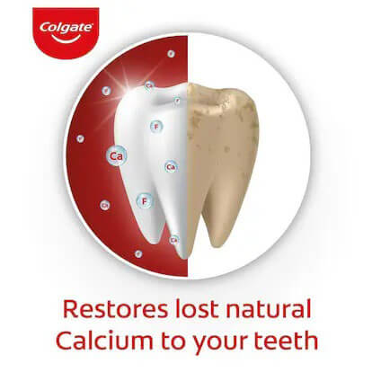 Colgate Strong Teeth tooth paste has power of Amino Shakti which helps to affix natural calcium from the saliva to your’s teeth.Amino Shakti presents to the exclusive formula which have contains of arginine and an insoluble source of calcium and fluoride.