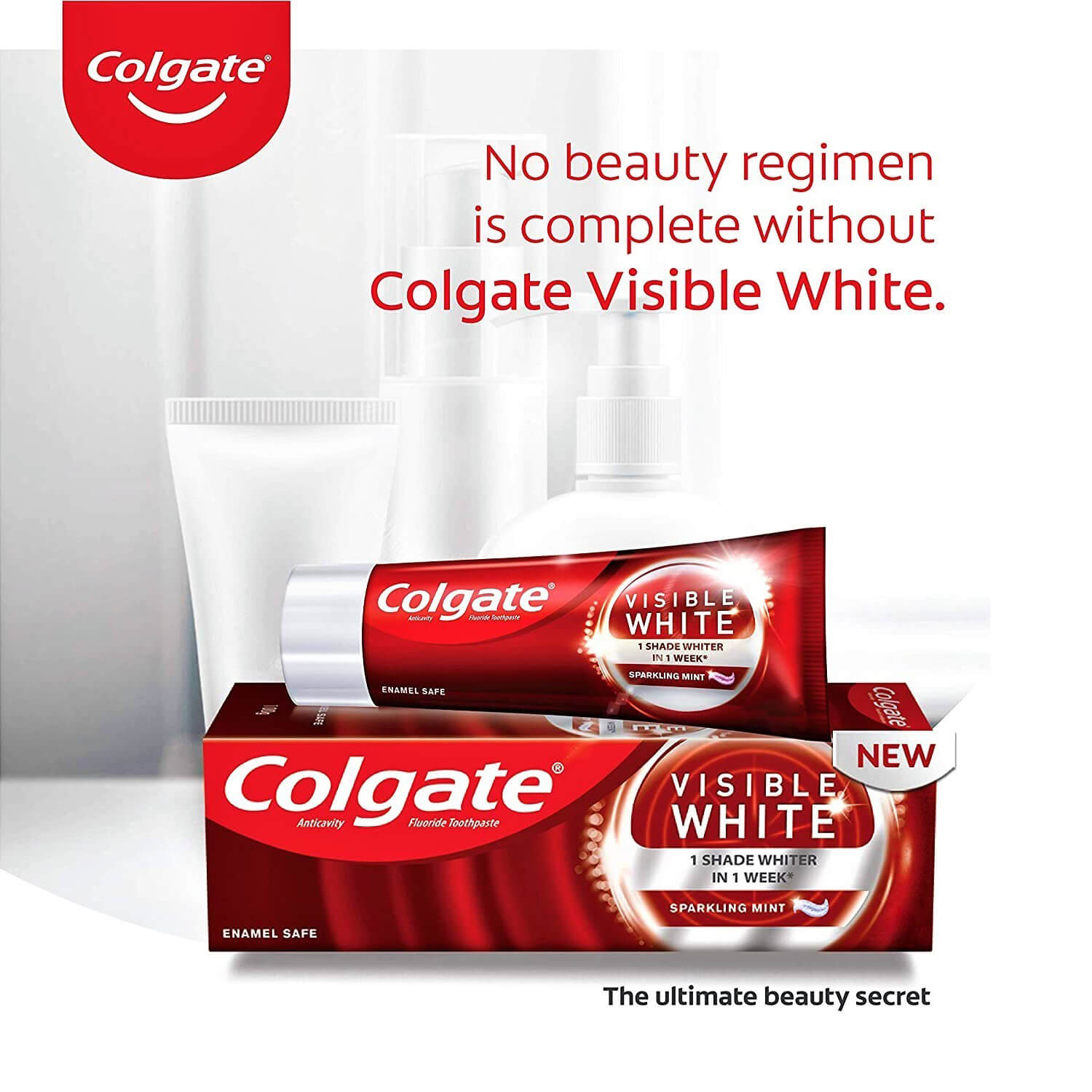 Colgate Visible Toothpaste has the power of a whitening accelerator that Provide You one shade of whiter teeth in one week with gently exfoliate strains.