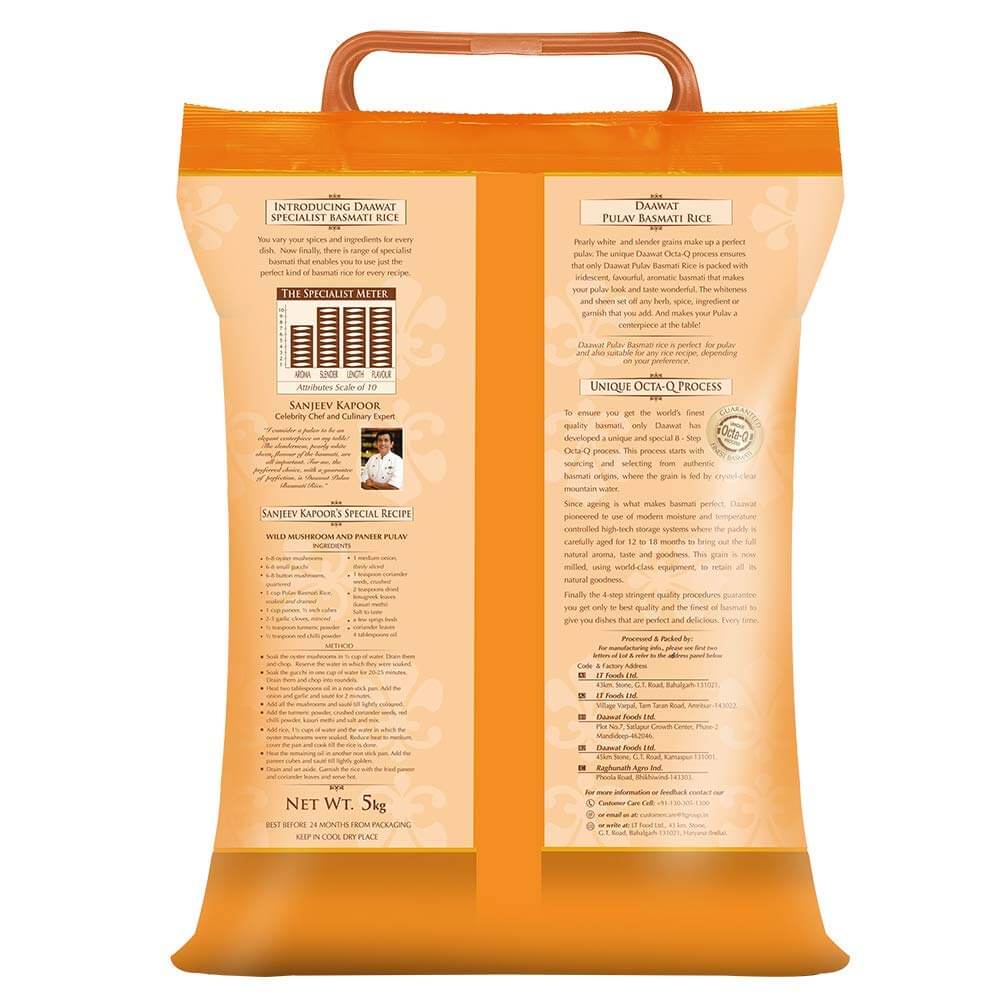 Daawat Pulav Basmati Rice is apt for anything from simple Peas Pulav to exotic, Persian recipes.