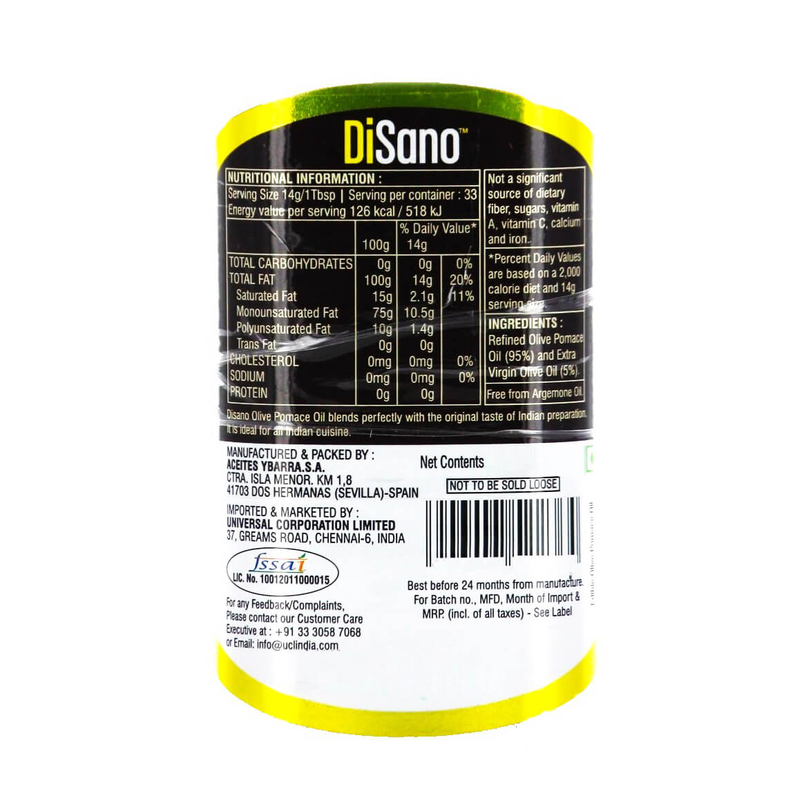 Disano Olive Pomace Oil is refined from the olive extract that has the highest smoke Point and...