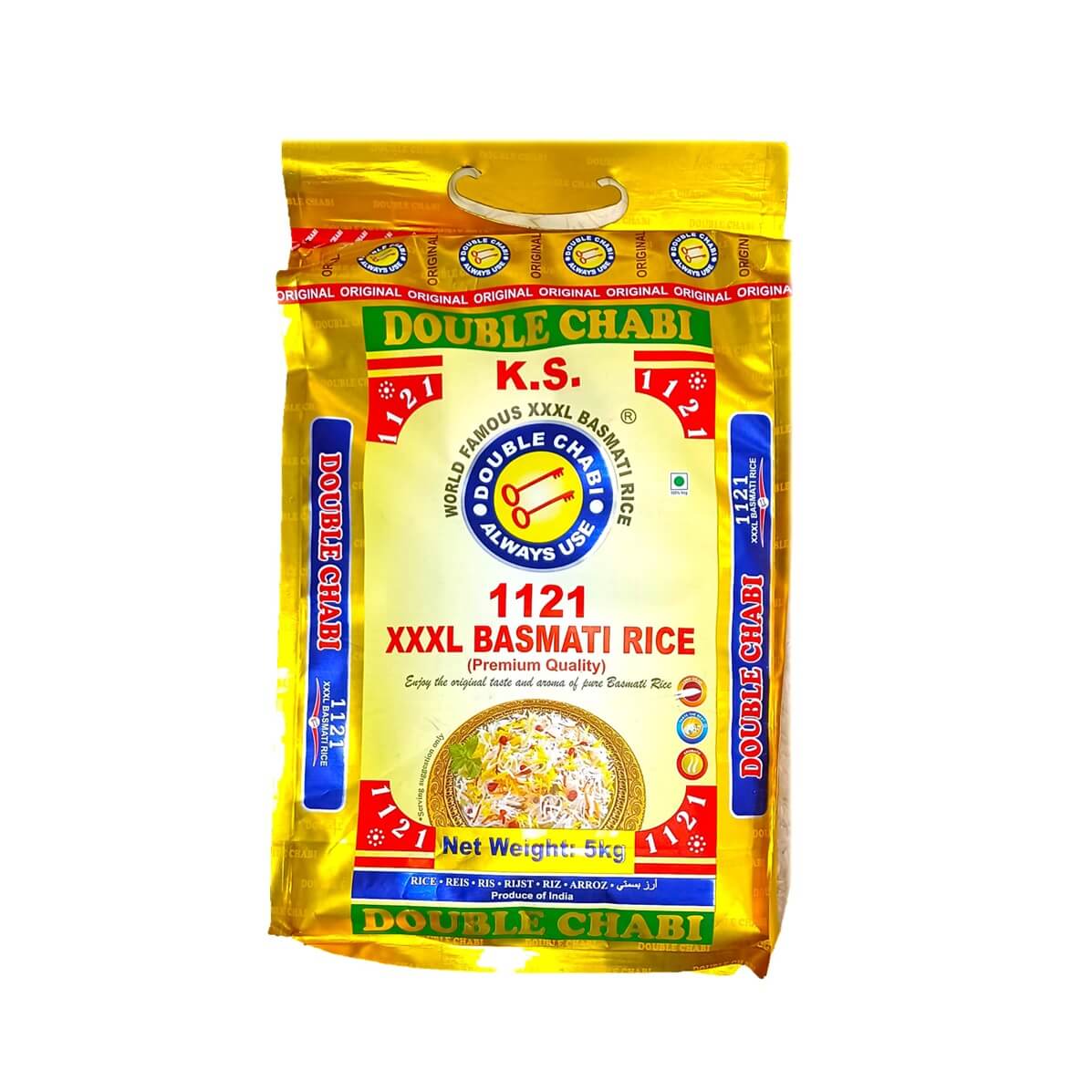Double Chabi Basmati Rice 1121 XXXL features long grains and a distinctly fragrant aroma, lending a delightful taste to any rice-based dish. Due to its quality, Double Chabi rice is widely exported to numerous countries, including Germany, USA, Italy, Jordan, Kuwait, Saudi Arabia, and Iraq.