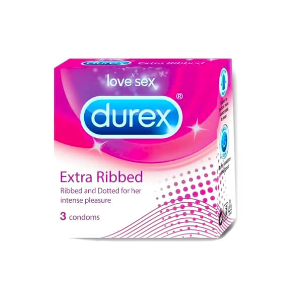 Durex Extra Ribbed Condom has a Ribbed & Dotted design that is a way of extra stimulation and gives more enjoyment to both partners.