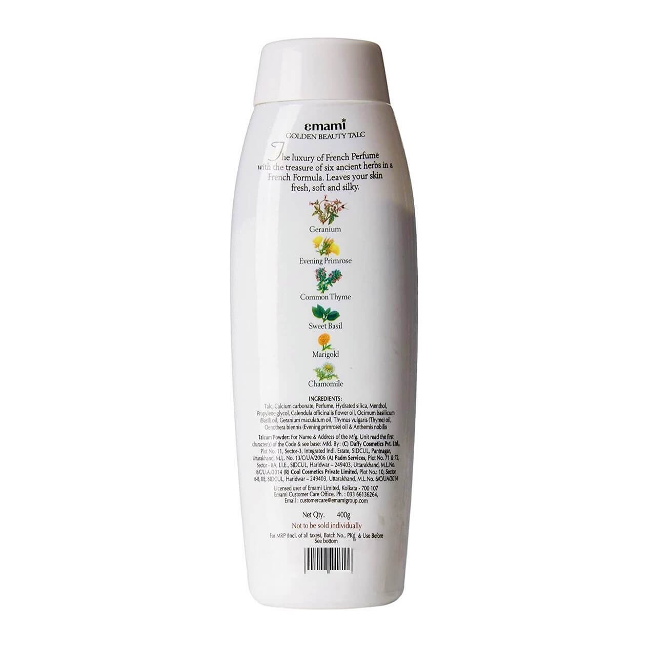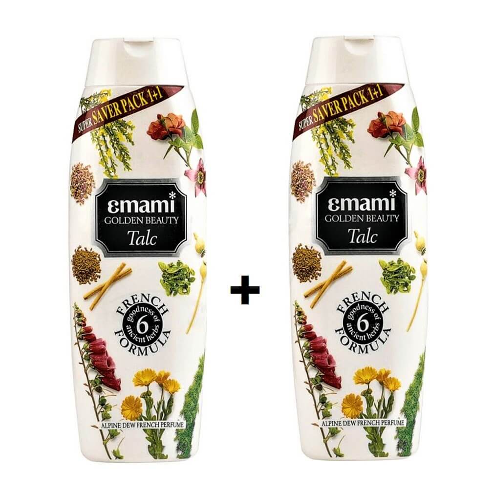 Emami Golden Beauty Alpine Dew French Perfume Talcum Powder gives you a luxury Alpine dew French perfume fragrance with six ancient ingredients of Geranium, Evening Primrose, Common Thyme, Sweet Basil, Marigold, and Chamomile that make your skin soft, smooth, and aromatic.