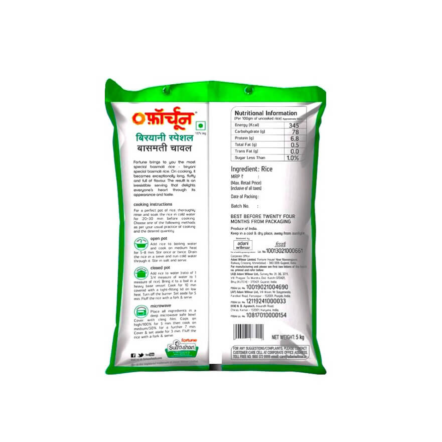 Fortune Biryani Special Basmati Rice has the world's longest basmati grain with a non-sticky texture that makes it perfect biryani rice for every recipe of biryani like Hydrabadi Biryani, Lucknow Biryani or Chicken Biryani, Veg Biryani, etc.