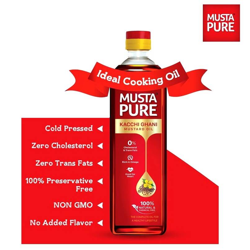 MustaPure Kachi Ghani Mustard Oil is made from the highest quality mustard seeds, cold pressed to preserve its natural properties and numerous benefits. Known for its bold aroma and pungent taste, this pure cooking oil adds a flavorful kick to your dishes. Available in 1 litre and 5 litre packs.