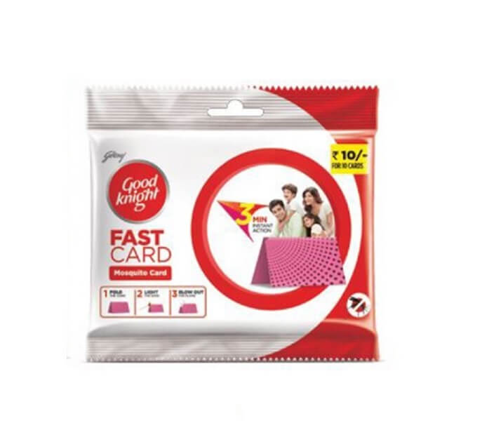 Good knight Fast card is an instant relief technology that gives fast relief from mosquitos and protects from mosquito-spreading diseases.