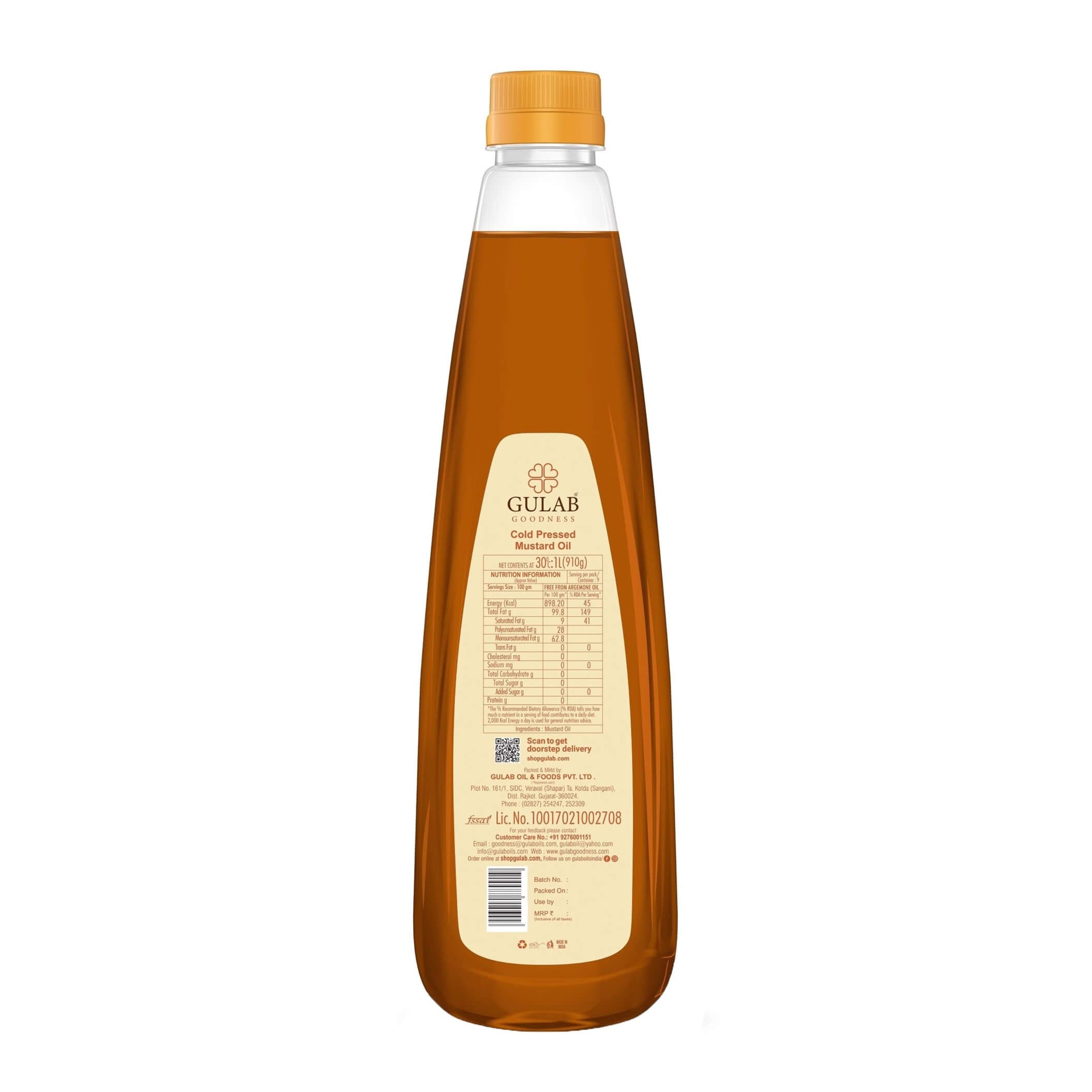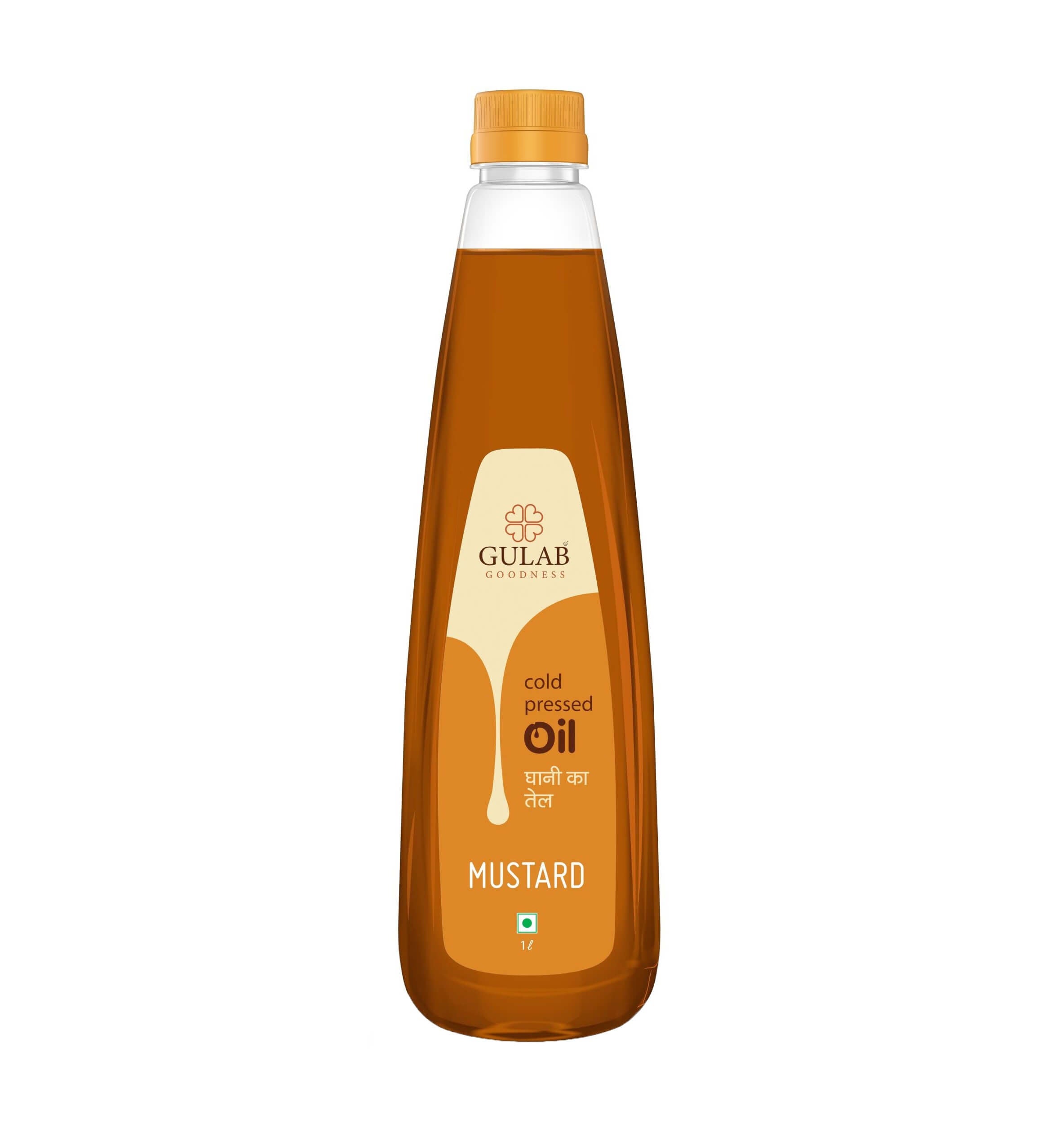 Gulab Goodness Cold Pressed Ghani Mustard Oil is produced using the kachi ghani through the traditional Bhartiya cold-pressing method. This oil is 100% pure and does not undergo any chemical processing, providing added benefits compared to other mustard oils. Specialty: + Made from kachi ghani using the traditional Bhartiya method. + Chemical-free cold-pressed mustard oil. + Suitable for daily cooking. + Ideal for external use, including hair growth. + Made of 100% natural and pure ingredients. This versatile and convenient mustard oil is perfect for daily use. Its traditional production method and lack of added chemicals make it a top choice for health-conscious individuals, offering various benefits for hair growth and other external uses.