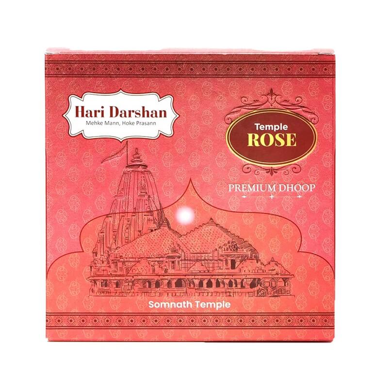 Hari Darshan Temple Rose Premium Dhoop Stick is a superior quality dhoop incense stick that is made from blended natural herbs, essential oil, and resins and releases a soothing and aromatic fragrance of Rose.