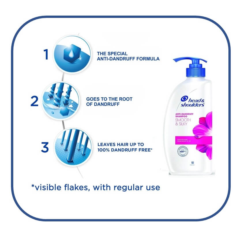 Head & Shoulder Anti Dandruff Smooth & Silky Shampoo has 24 % Frizz control strength formulated with added Moisture technology which is designed for Cleanse, dry, frizzy hair. This Shampoo Leaves hair up to 100% dandruff-free.