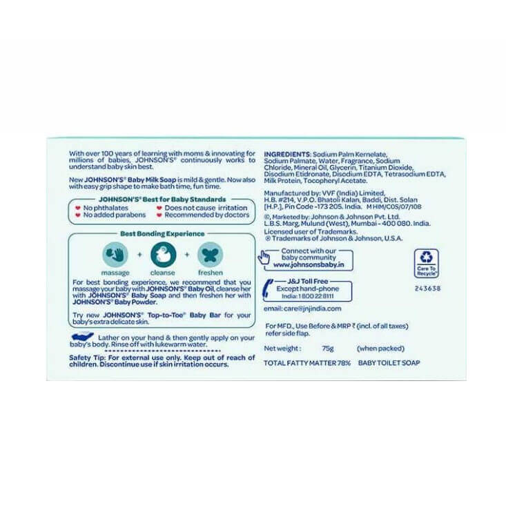 JOHNSON'S baby milk soap has a content of natural milk proteins and vitamin E, which provide complete skin nourishment to the baby skin and make it soft, smooth, and healthy. It has been Clinically proven that soap is gentle for a baby’s skin. This soap is safe for baby rinses.