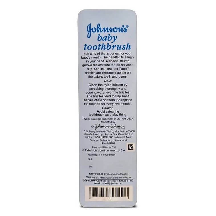 Johnsons Baby Toothbrush is specially designed for the fragile gums of a little baby. It is made with ultra-soft TYNEX bristles to suit the delicate gums of babies. It is very light and easily manageable. This brush can be used for babies between 1 to 5 years of age. This brush has a flexible neck to provide swift and easy movement of the brush inside the mouth of the baby.