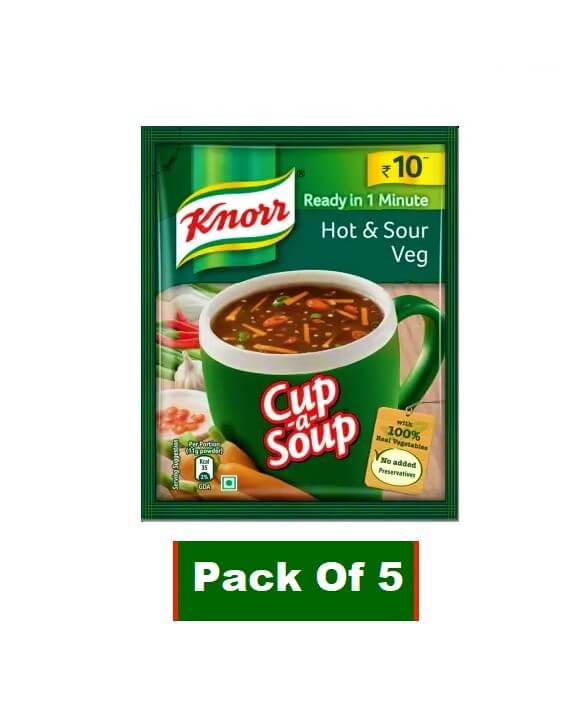 Knorr Hot & Sour Veg Cup Soup is a little hot & sour with adds a Chinese zing that satisfies your small hunger pangs in just 1 minute.
