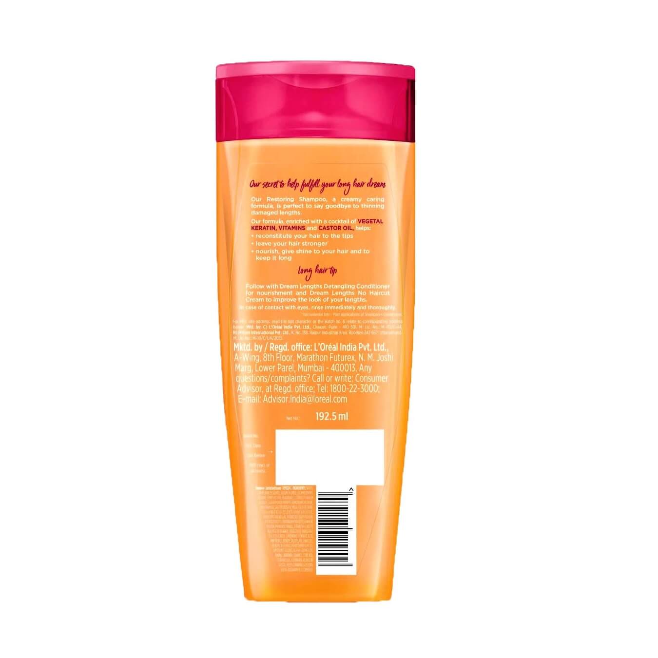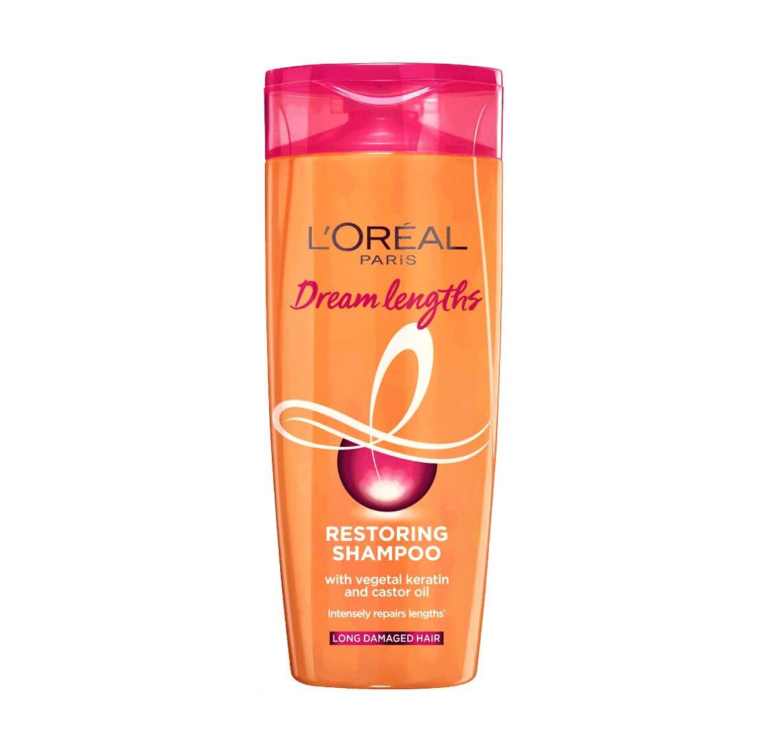 L'Oreal Paris Dream Length Restoring Shampoo has the power of vegetal keratin & Castor Oil which provides your hair's dream length, Strength with a Shiny look and repair damaged hair and save your last 3 cm.