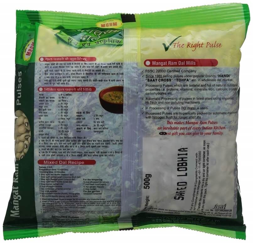 Mangat Ram White Lobhia is Premium Quality Labhia which has contain More Protein, Fibre, Folic acid, Nutrition, and highly aromatic taste.