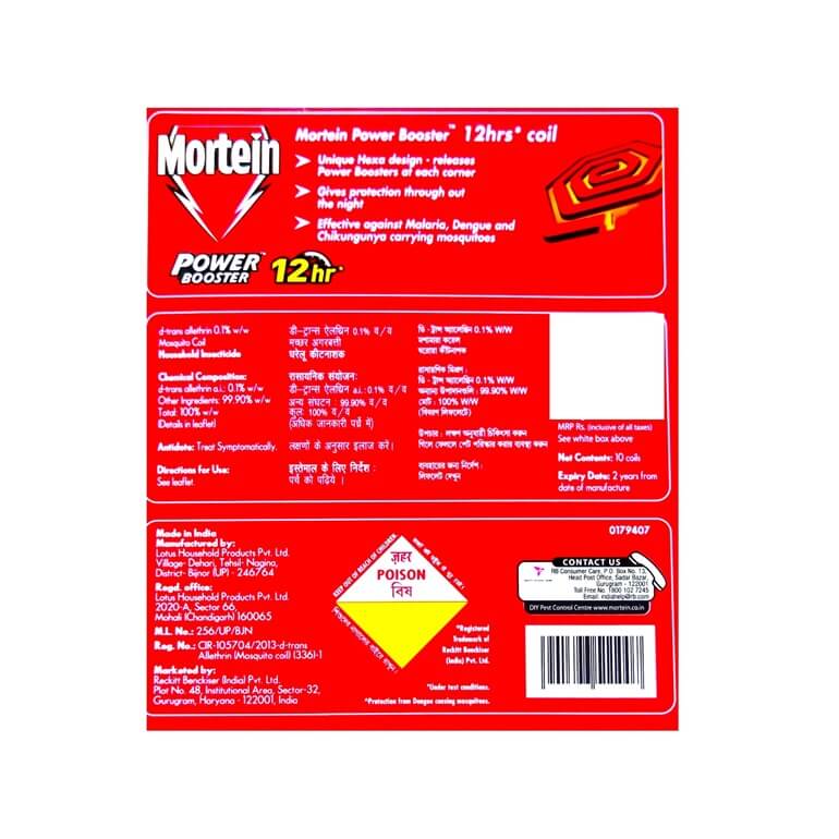 Mortein Power Booster Mosquito Coil gives you up to 12 hours of protection from dangerous mosquitoes at every corner of your home, or office and prevents mosquito spreading Diseases Like Dengue, Chikungunya, Malaria, etc. It is specially designed and does not break during disassembling the coils. It has a pleasant fragrance which makes your rooms smell good.