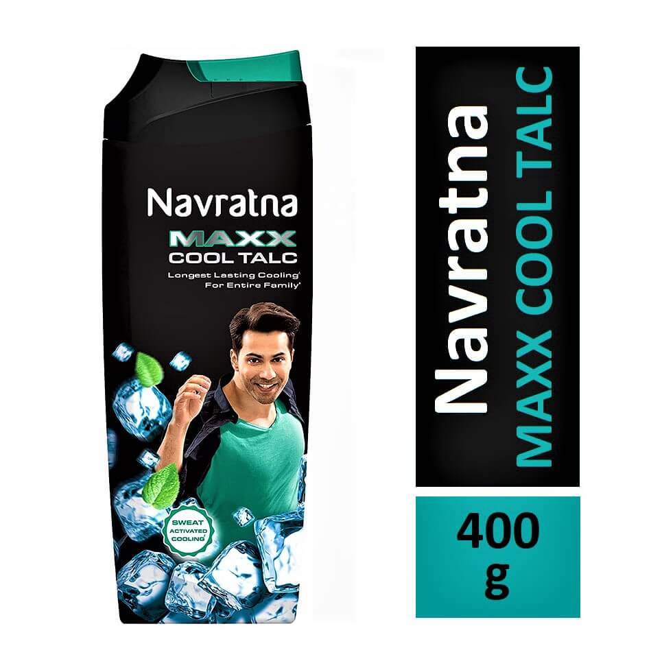 "Navratna Maxx Cool Talcum Powder" absorbs and reduces your body Sweat and makes your Body refresh with smooth skin.