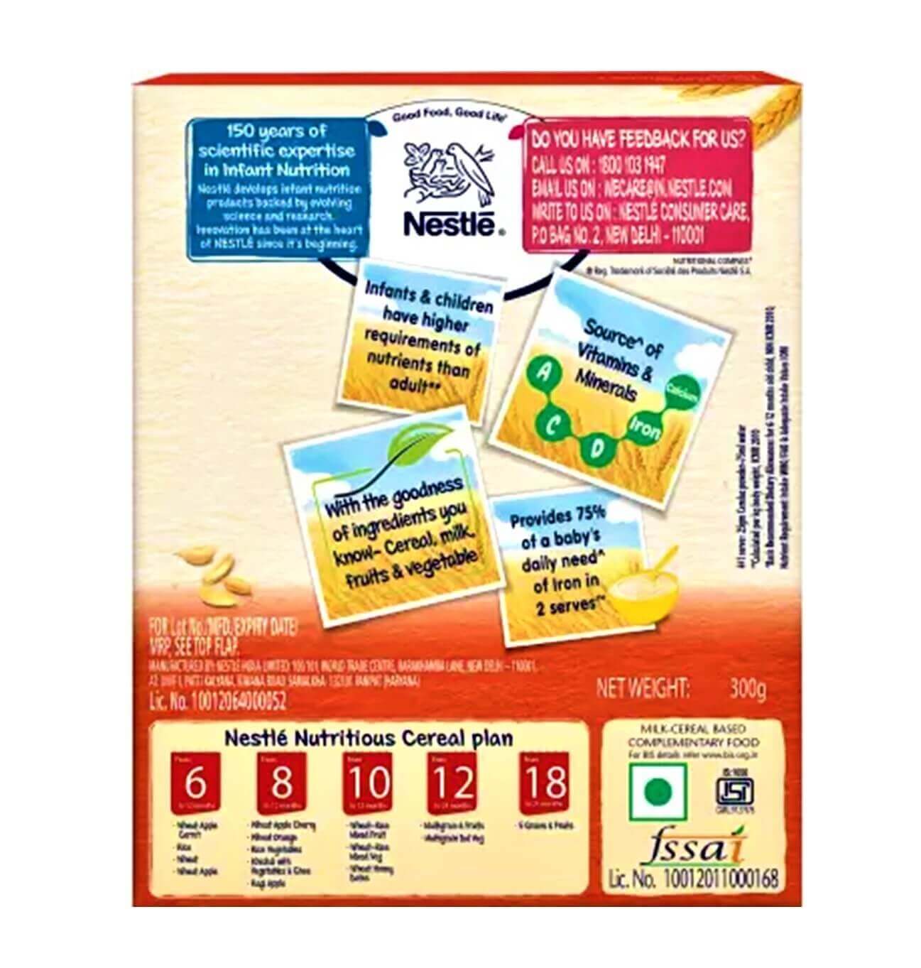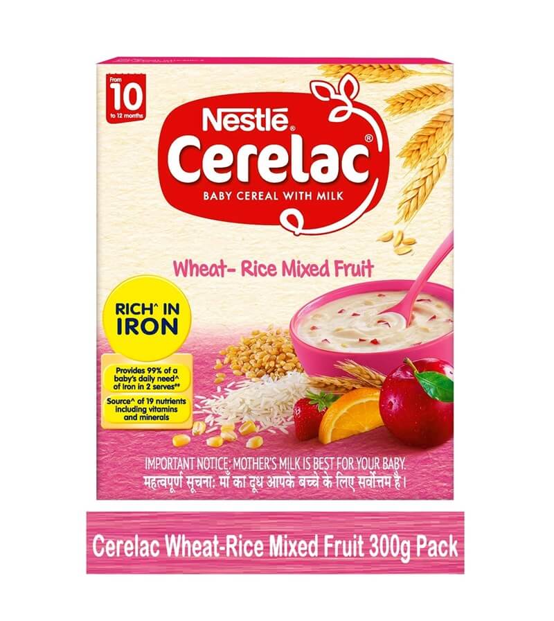 Nestle Cerelacs Wheat Rice-Mixed Fruits provides 99.9 % Daily need Iron to your baby in two time serves.It has Complete source of 19 Nutrients including Minerals & Vitamins. It is suitable for 10 to 12 Month above Babies.