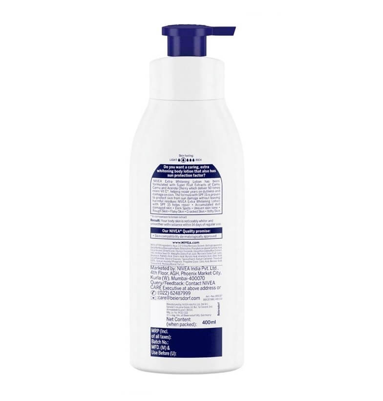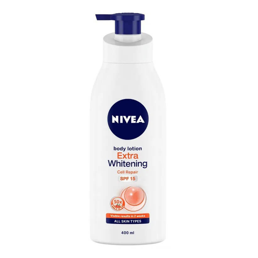 Nivea Extra Whitening Cell Repair Body Lotion Protect from UV (Ultra Violet) Rays and save your skin from dryness, roughness, Flakiness, and Darkness.