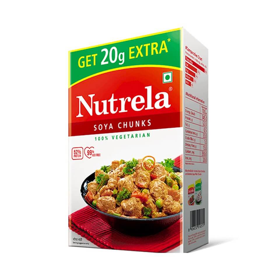 Nutrela Soya Chunks/Soya Badi is a good source of Vitamin, Protein, dietary fiber, Calcium, Omega-3 & 6 Fatty Acids that help to maintain your good health. It is 100% Vegetarian Protein & Vitamin Source.