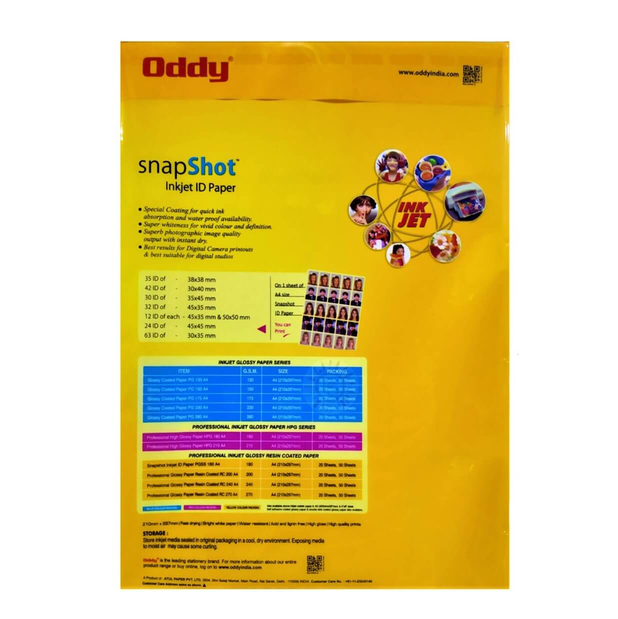 Oddy Snapshot Inkjet Id Glossy Photo Paper is used for printing of Photos, and Multipurpose work of Quality printing, photocopies, etc.