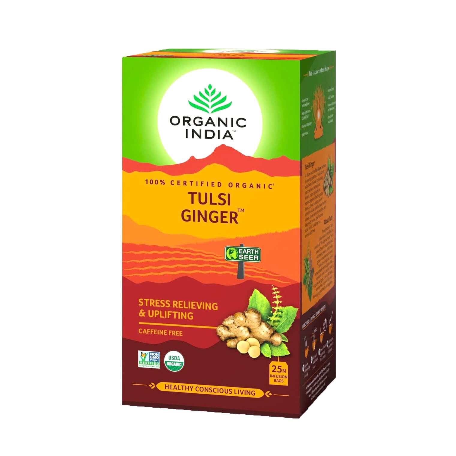 Organic India Tusi Ginger Green Tea Bags have a combination of Tulsi Leaves (Rama, Krishna & vana Tulsi), Ginger, and Green Tea Leaves that every tasty sip relieves stress & makes your mind refreshed & rejuvenated with a offer of healthy metabolism which is vital to weight management.