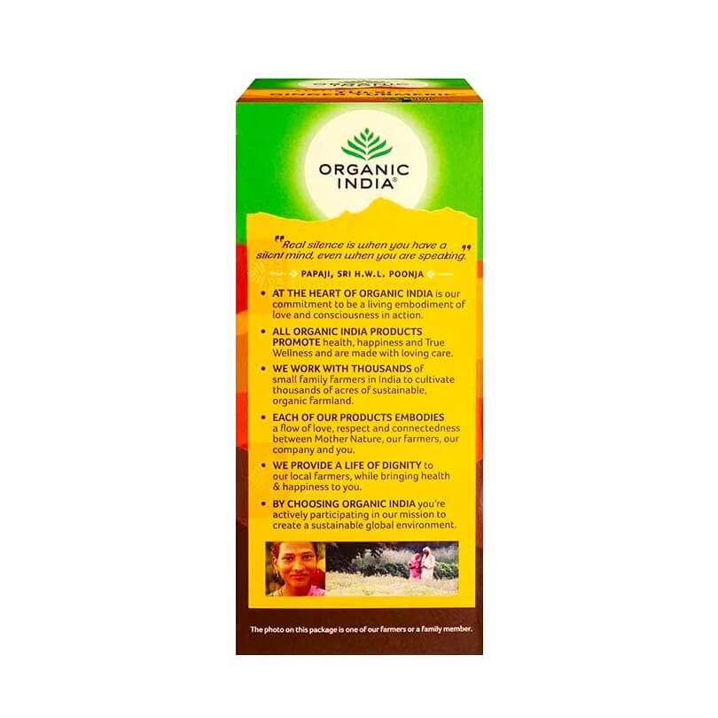 Organic India Tulsi Ginger Turmeric Tea Bags have the combination of Tulsi Leaves, Ginger & Turmeric that is burned up toxins and improves your digestion of your body. Tulsi Ginger & Turmeric Green Tea's delicious daily treat relives your stress and uplifting your Mood.