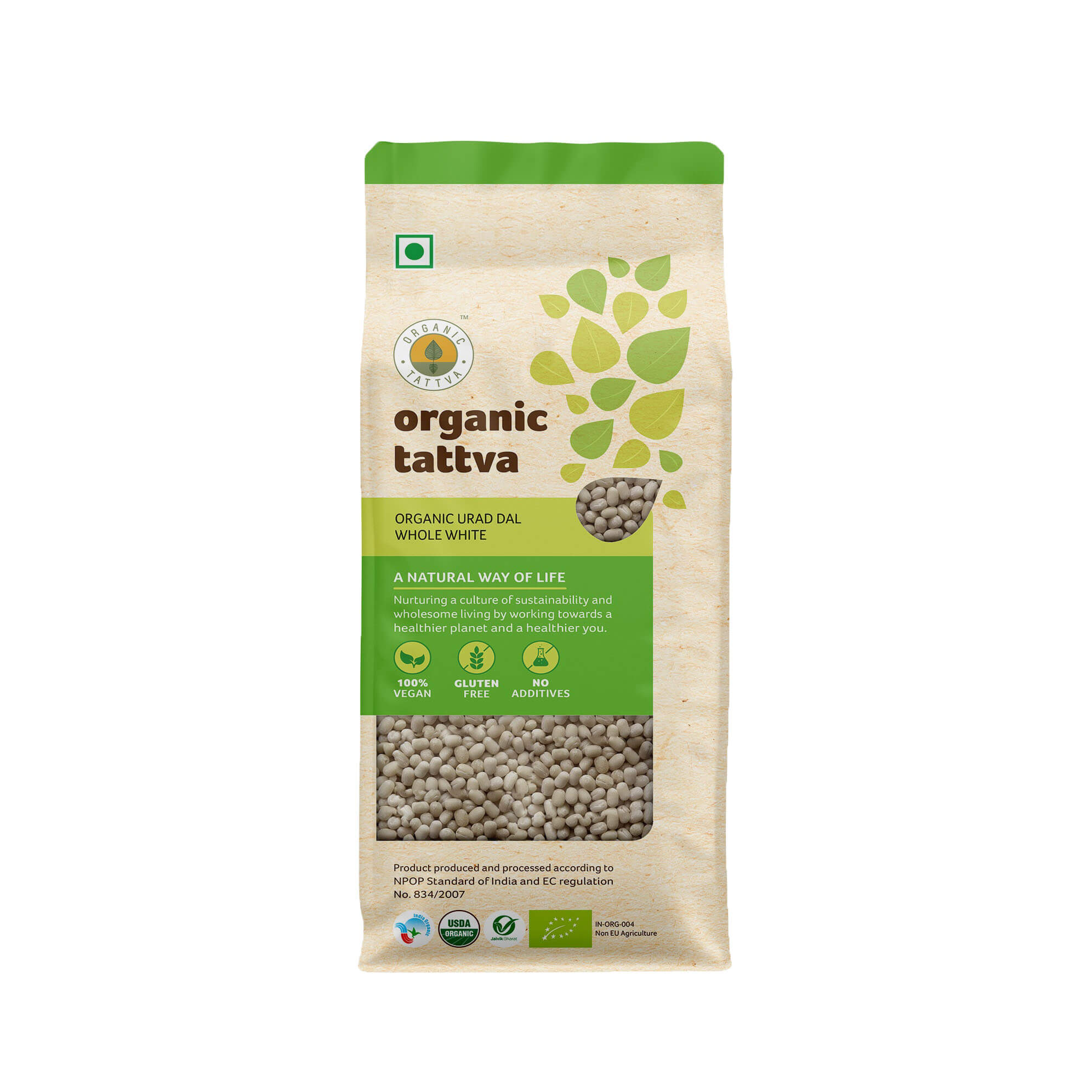 Organic Tattva Organic Urad Dal Whole White is full of Iron, Calcium, Protein, Vitamins, Minerals, Dietary fibre, Sodium, etc., and is free from Trans fat & Cholesterol which makes You healthy.