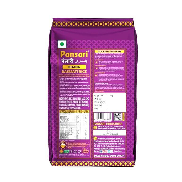 Pansari Khana Basmati Rice is the best quality Basmati Rice that has long grains texture and a special aroma that makes for delicious and flavourful rice dishes.