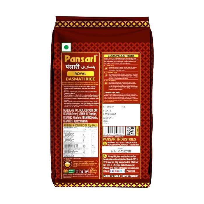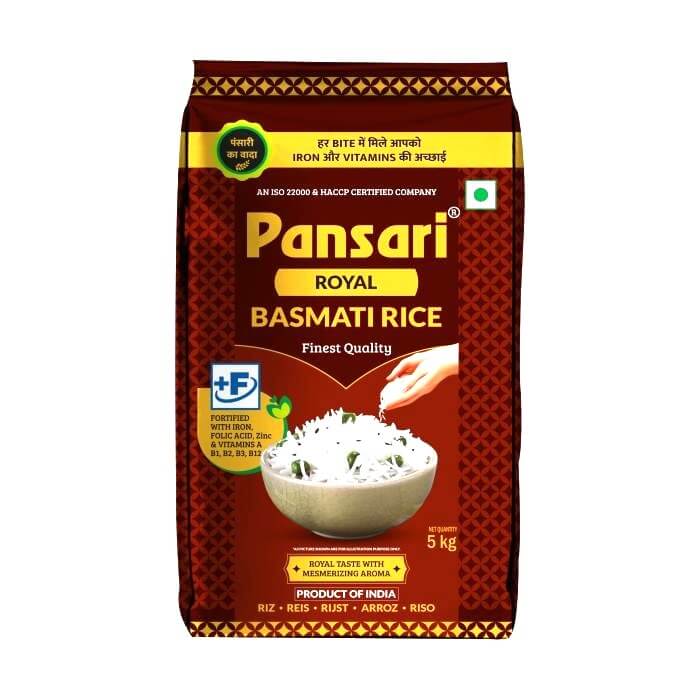 Pansari Royal Basmati Rice is a high-quality Basmati Rice that has long grains texture and a special aroma that makes for delicious and flavourful rice dishes.