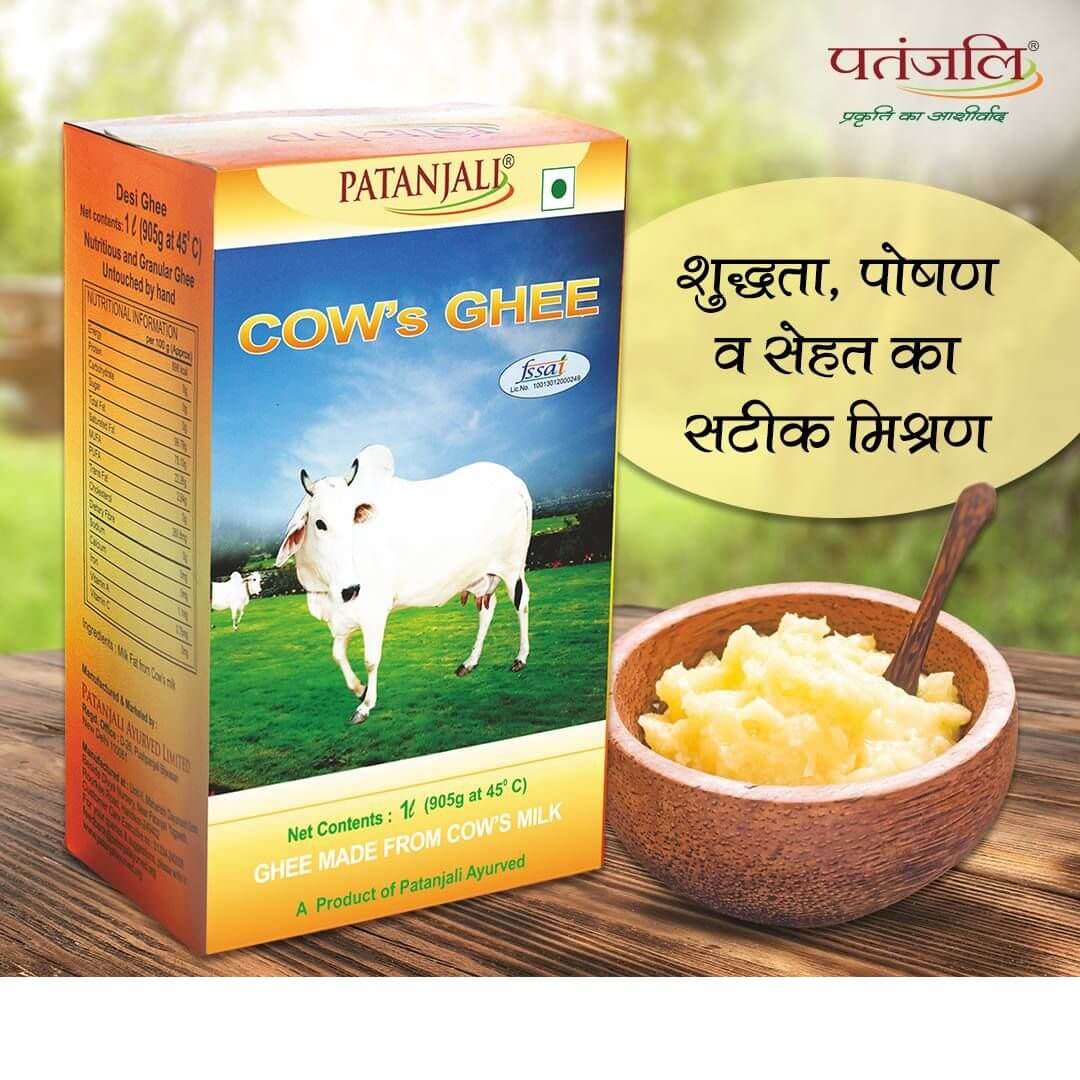 Patanjali Cow Ghee is full of nutritive and an ideal diet. Cow ghee increases memory, intellect, the power of digestion, Ojas, Kapha and fat.Regular consumption of ghee or inclusion of ghee as part of the diet, is recommended for those seeking weight gain.