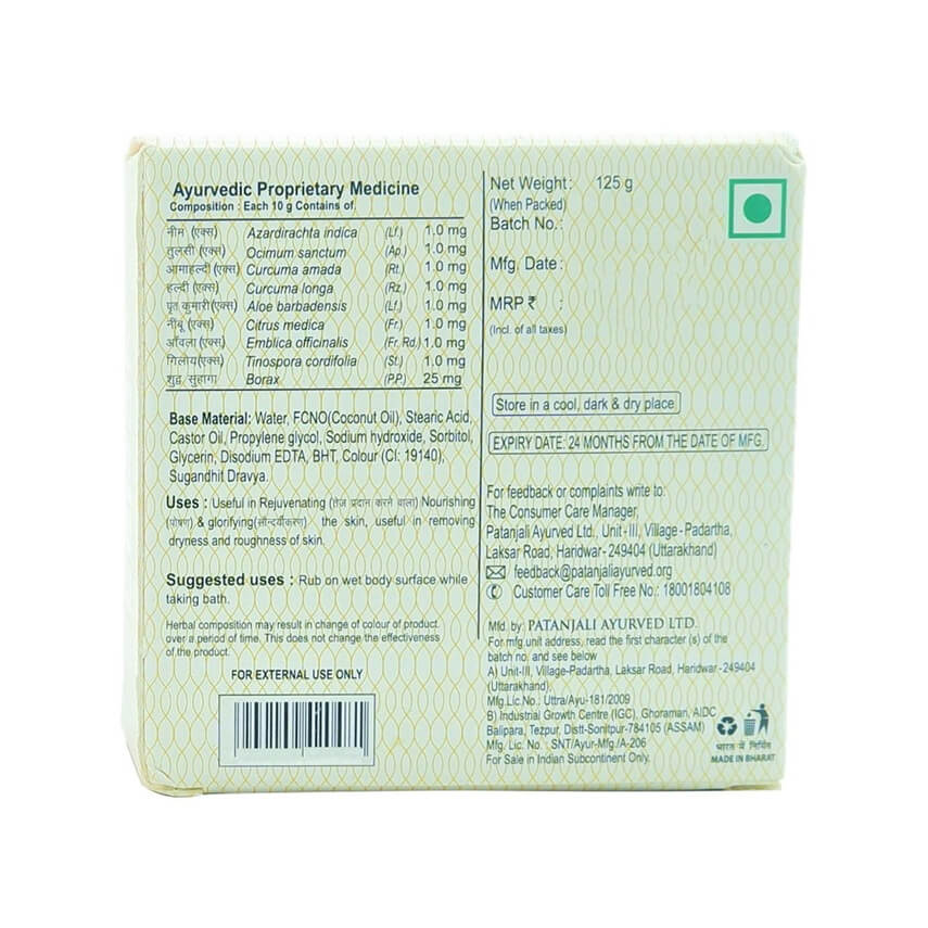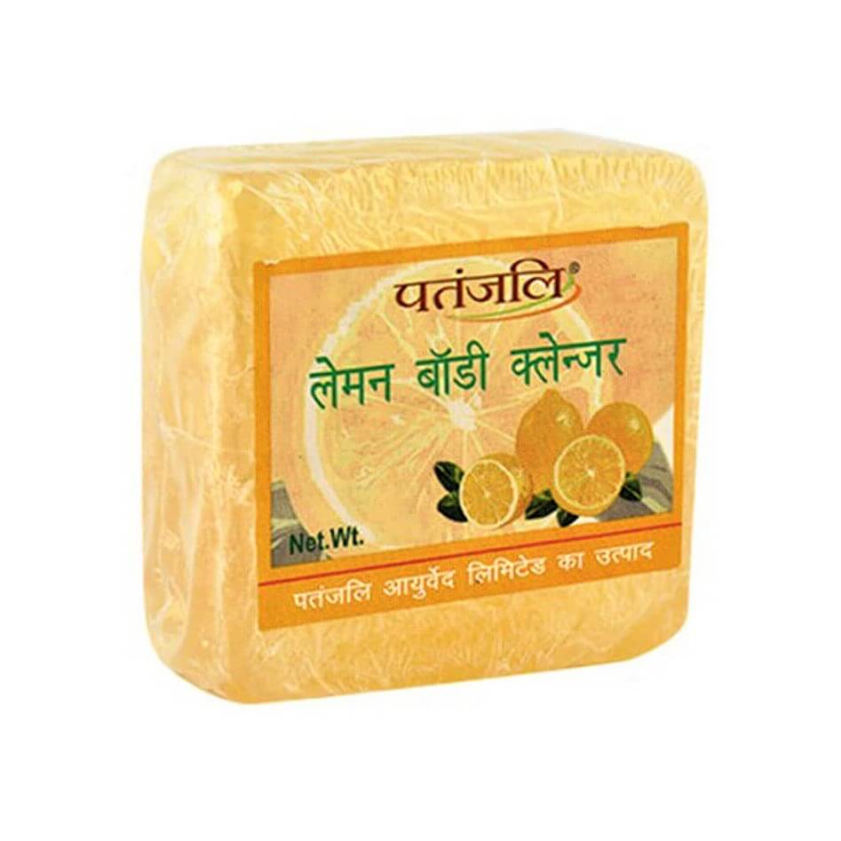 Patanjali Lemon Body Cleanser Soap is made with Lemon (Nimbu) Extract & Ayurvedic Ingredients such as Neem, Haldi, Alovera, Amla, Ghritkumari, Aamahaldi, Giloy, Shudhha Suhaga that protect your skin from dryness and roughness and nourish your skin with the aromatic fragrance of Lemon.