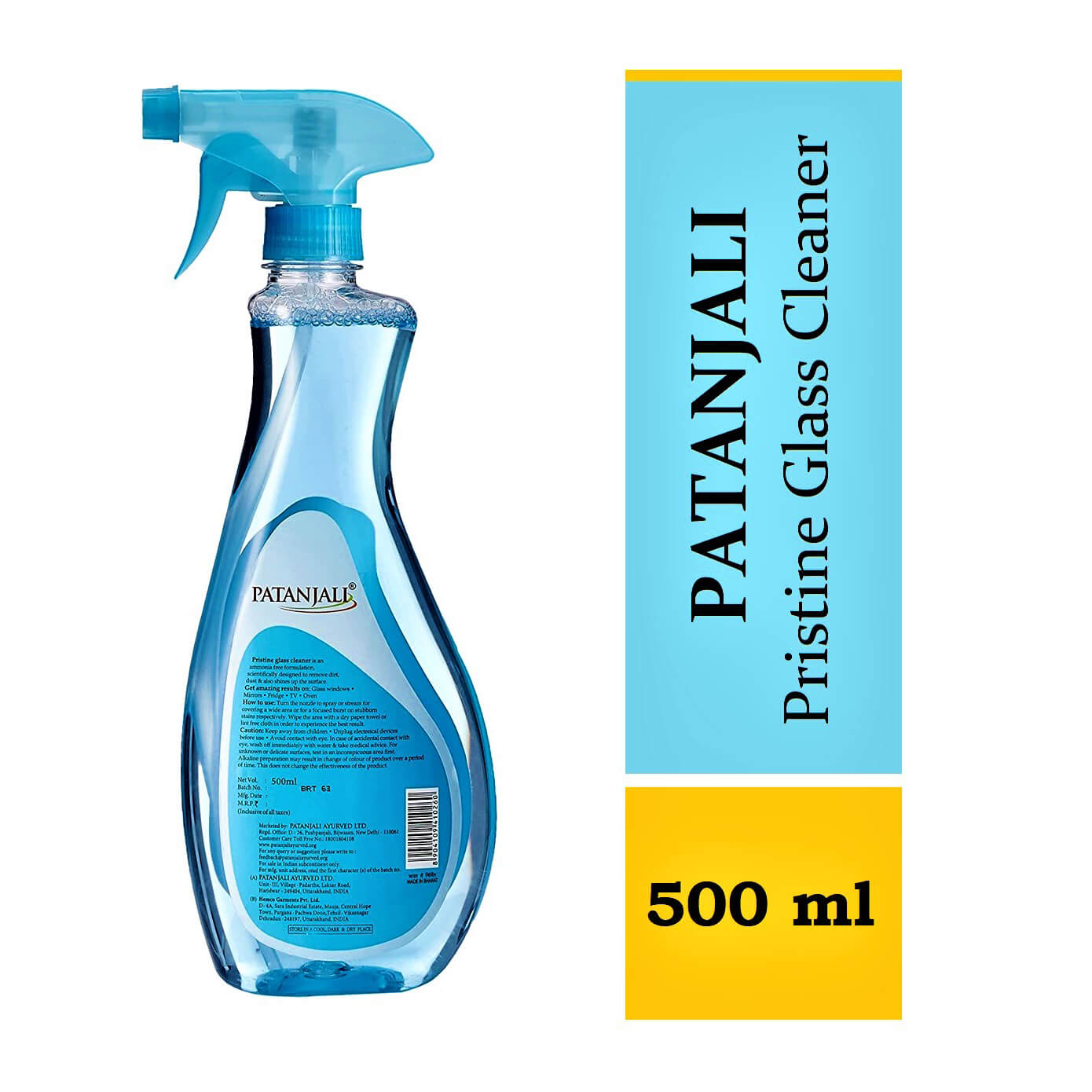 Patanjali Pristine Glass cleaner liquid has the power of shine boosters which is free from ammonia and specially formulated to remove dirt from glass/Mirrors, Appliances, and other surfaces in your house & offices.