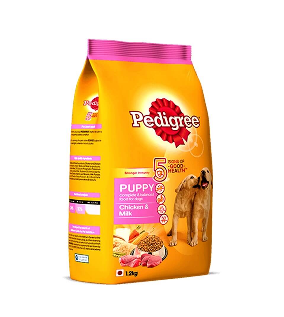 Pedigree Puppy Chicken & Milk is a meal of puppy which have all the essential nutrients vital that provide healthy growth to your pet puppy. All essential nutrients in this puppy packed food, covered by cereals, chicken, meat, soybean, carrots, peas & milk with a tasty treat