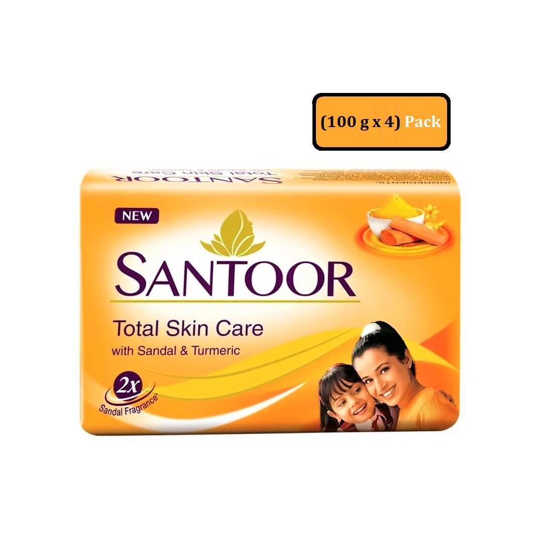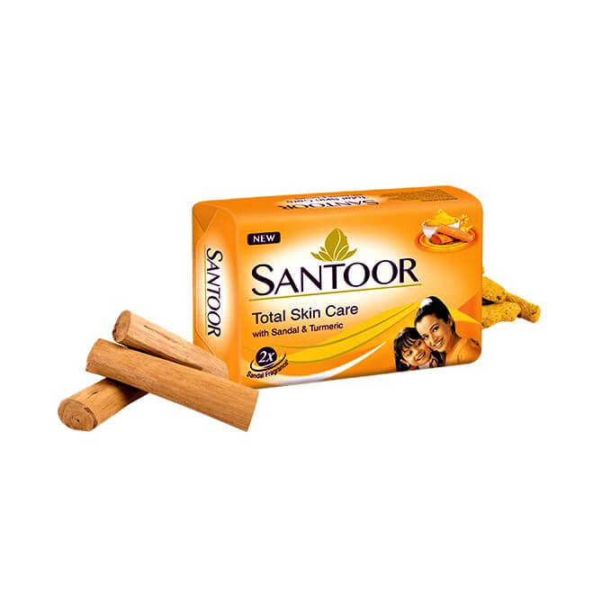Santoor Total Skin Soap is enriched with Sandal & Turmeric that Care for your skin and help to keep your skin clear, scar & Marks free, and also provide healthy, glowing, and happy skin.