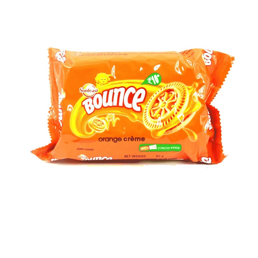 Sunfeast Bounce Orange Cream Biscuits are enriched with the aromatic flavor of Orange with the addition of crunchy biscuits with cream between them that makes it Crunchy & Delicious Cream Biscuits.
