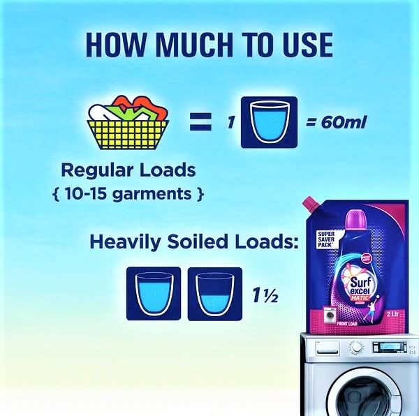 Surf Excel Front Load Detergent liquid is designed for Front Load Washing to provide a superior laundry experience with superior fragrance. It has a powerful cleaning technology that penetrates stains faster and removes tough stains in washing machines themselves. The detergent liquid is dissolved quickly in the high water level atmosphere of washing machines which reaches stains effortlessly and leaves no residue on clothes or in machines. It is made from a seven-layer deep penetration formula partnership with the machine to remove tough stains in the machine itself.
