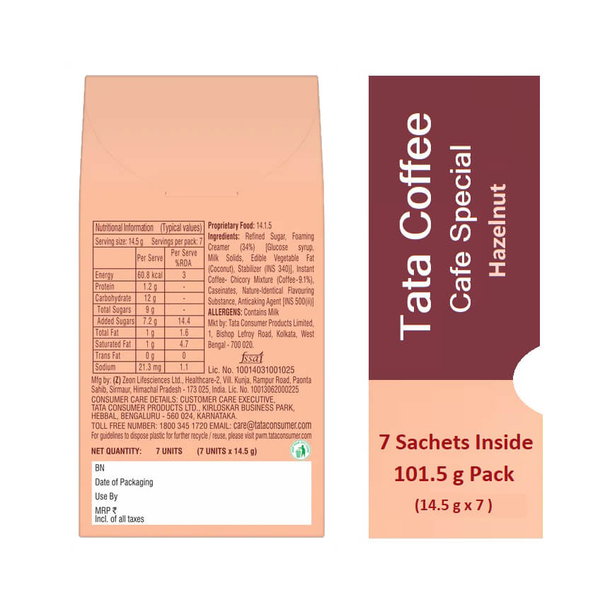 Tata Coffee Hazelnut is a cafe-type Instant coffee mix where you can enjoy creamy & frothy cafe Hazelnut coffee at home.