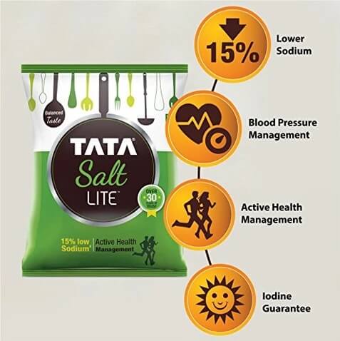 Tata Salt Lite is a low-sodium salt which enriched with iodized and potassium. In this Low sodium, Salt has 15% lower sodium than regular salt which assist to keep far from Hypertension or high blood pressure and Diabetes.