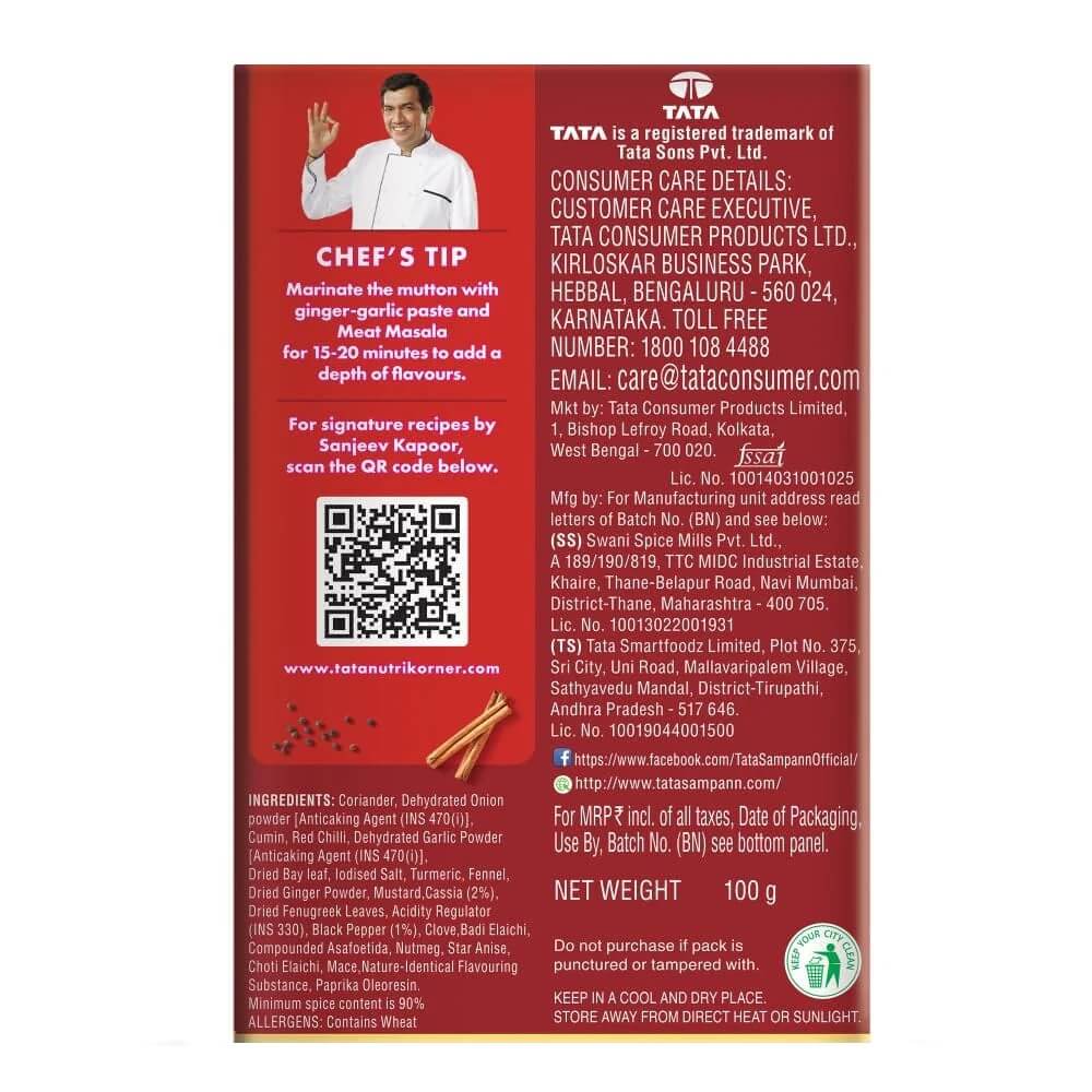 Tata Sampann Meat Masala 100 g Pack is a unique mixture of top-grade spices such as Coriander, dried bay leaf, cumin seeds, black pepper, dried ginger, cassia, and other powerful spices. This perfect combination makes it an excellent option for cooking a range of Indian dishes, particularly those with vegetable as the main ingredient.