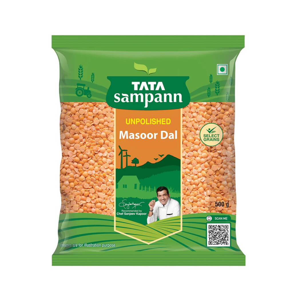 Tata Sampann Masoor Dal offers both taste and nutrition. This dal is naturally packed with protein and provides a high amount of dietary fibre. Through its five-step process, it maintains a consistent size and color while preserving its nutritional value. Enhance your meals with this unpolished dal, pairing it with rotis, rice, or bread.