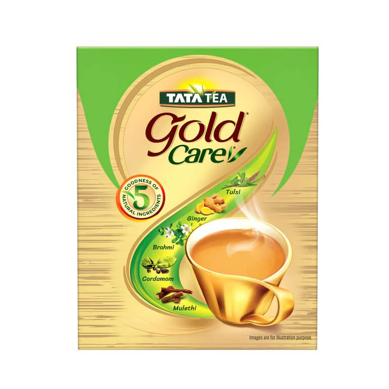 Tata Tea Gold care tea is a rich blend of signature black fine quality Asam tea with the natural flavor of Ginger, Mulethi, Tulsi, Brahmi, and Cardamom that makes every cup of tea special and scrumptious.