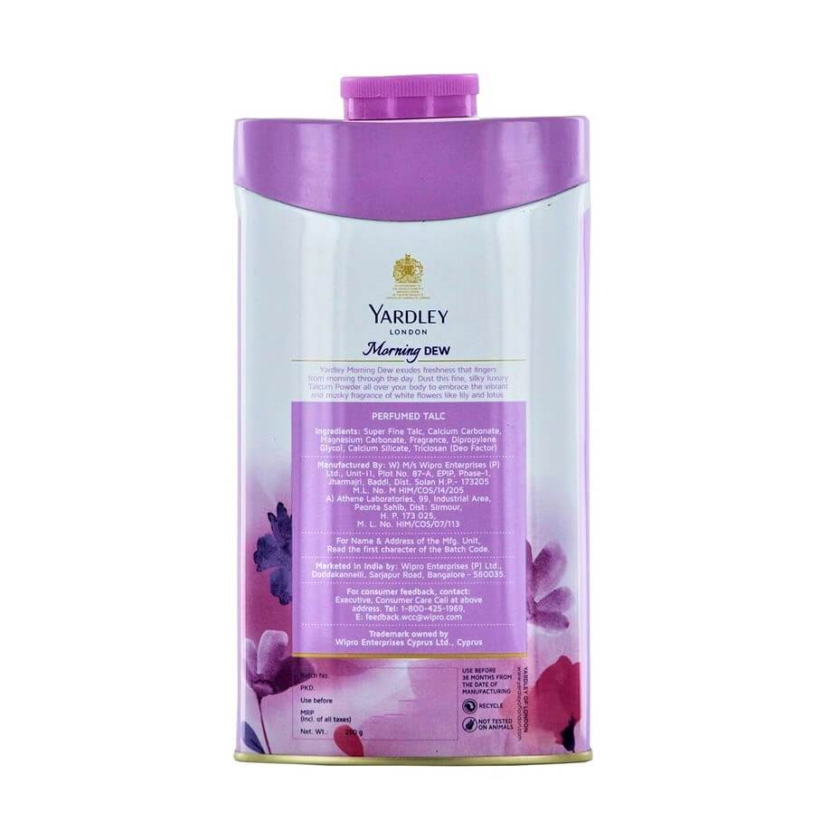 Experience a refreshing and long-lasting fragrance with Yardley London Morning Dew Perfumed Talcum Powder. Its vibrant and Perpetual scent of white flowers will invigorate your senses and keep you feeling fresh all day. Plus, the Jasmine flower fragrance is perfect for any skin type.